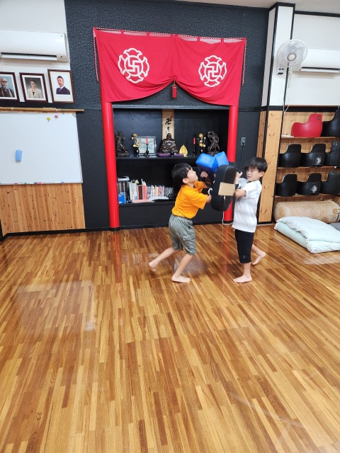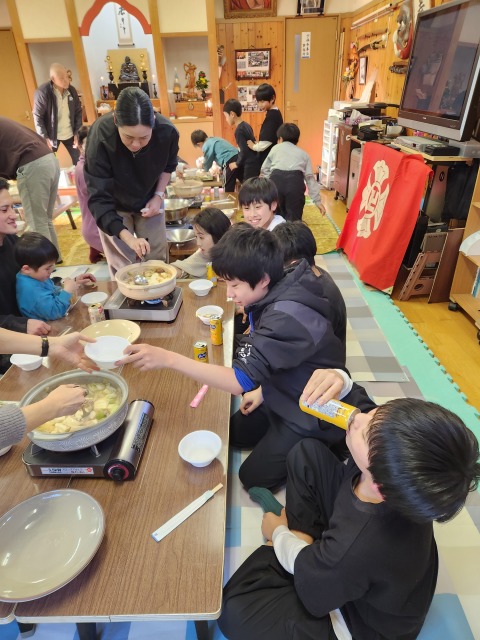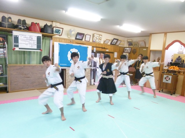ご厚意で宿泊させていただいた市川若宮道院の道場での一コマ。